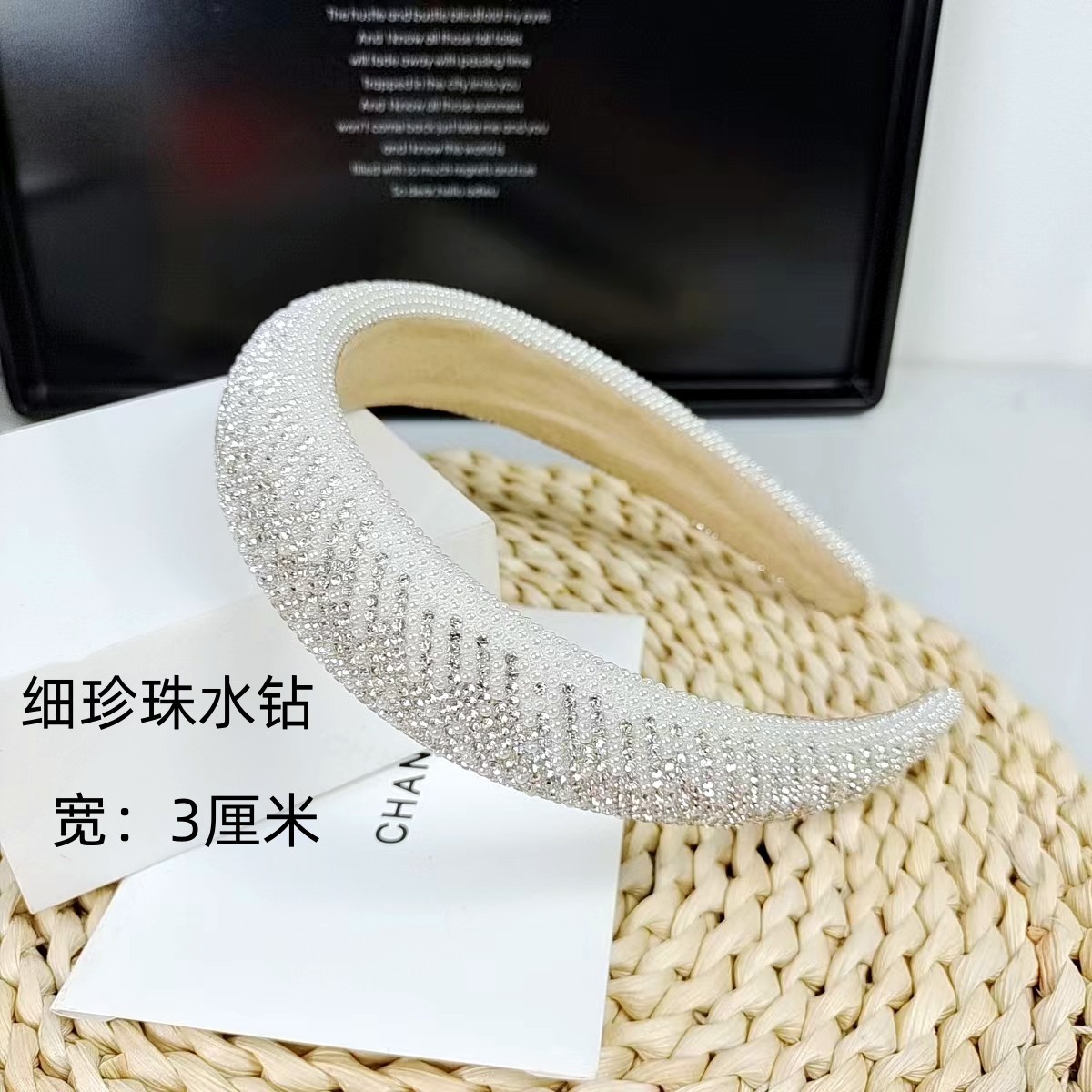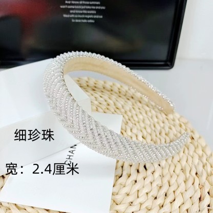3cm Fine Beads Rhinestone Headband [Straight Pearl Rhinestone]]